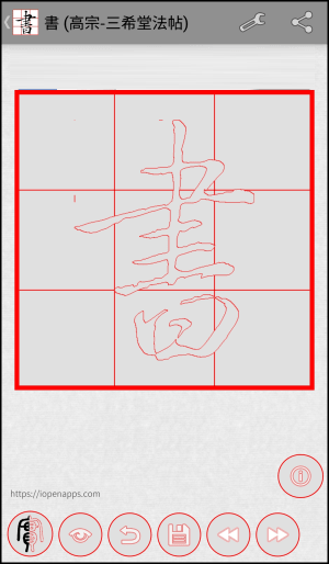 非常棒的練字App-書法加免費版 (CalliPlus) 書法字典,蒐集了各大書法家(歐陽詢、王維、蘇軾…)在各字帖中的寫法,透過描繪九宮格,模擬寫字,掌握出每個字體的結構,就像真的在書法練習本上寫字一樣。